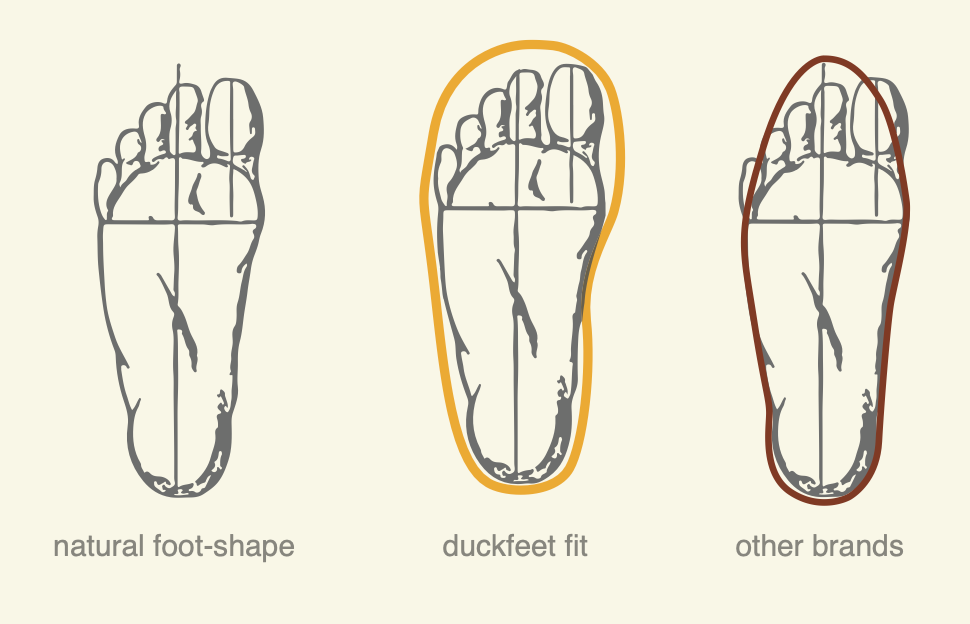 Duckfeet fit the foot, not the fashion. We are different by design, and we're really proud of that. Learn more about the wide toe box fit & shape here!